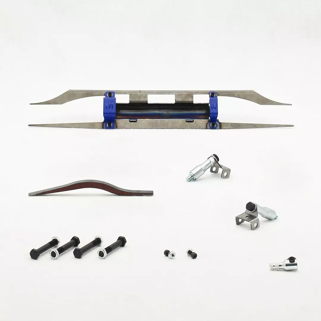Due to the Toyota GT86 boxer engine, the original steering rack location is very unsuitable for drifting, therefore the steering rack has been moved from under the front cross-member with the possibility to use either the boxer engine or I6/V8 or something else. Lexus IS 1st gen (XE10 1998-2005) hydraulic steering rack is needed to be used with the kit to replace the original electric power steering. Lexus IS steering rack attachment/cross-member insert along with cross-member supports are included in the kit. To modify the cross-member some DIY cutting and welding needs to be done.